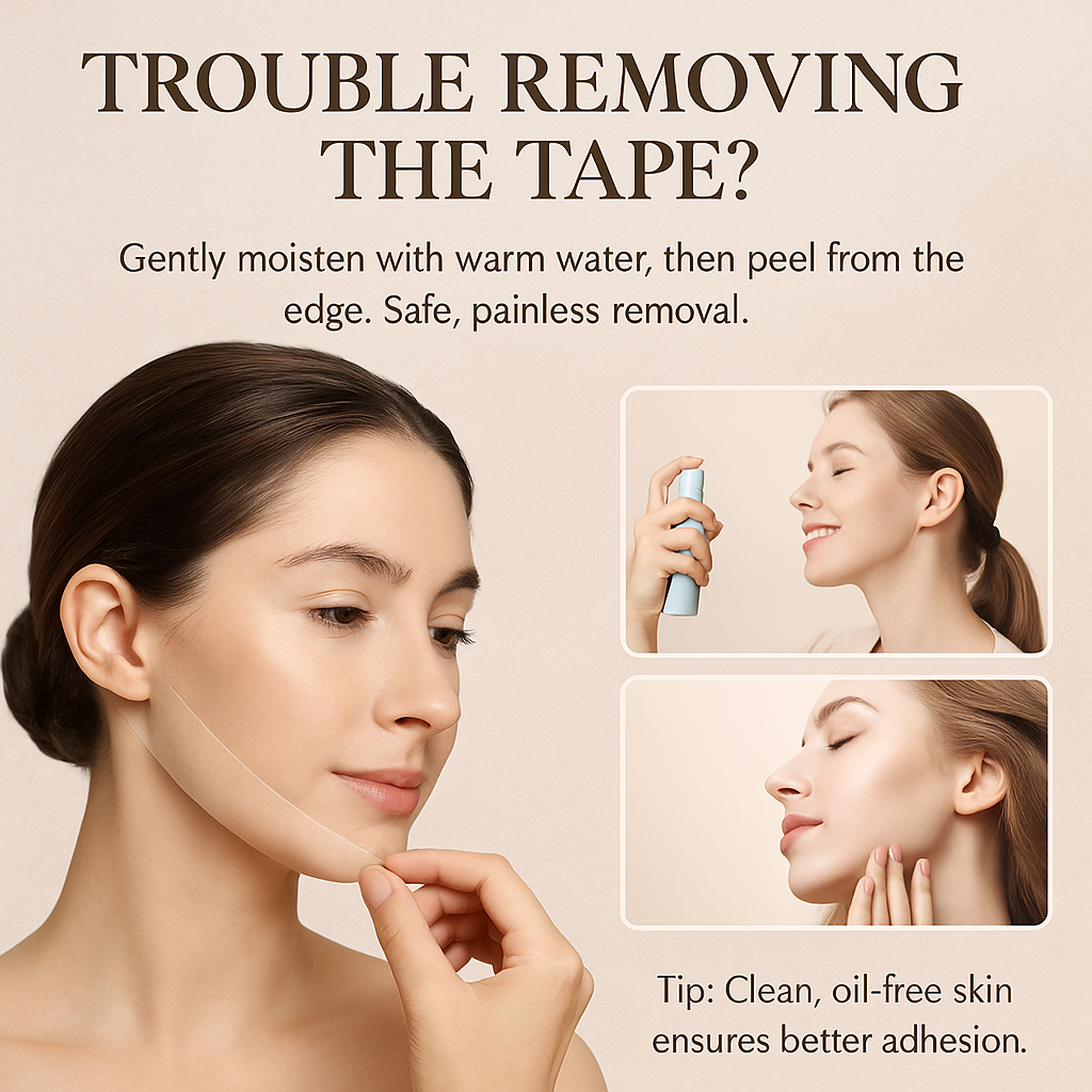 Clean and dry your skin completely. Gently peel the sticker from the sheet. Place it on the area you want to lift (cheek or jawline). Pull lightly upward for a lifting effect. Press firmly to secure it in place. Style your hair to cover the edges if needed.